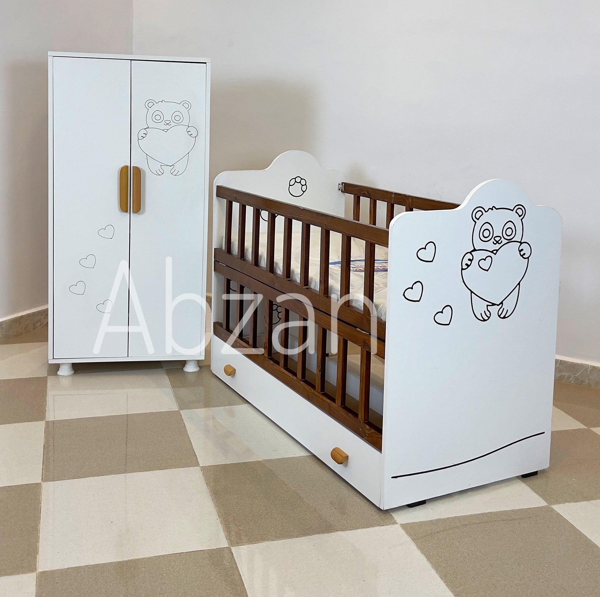 Bois rouge Solide Confort Avec 02 niveau Il s'ouvre sur côté Avec un grand tiroir Dimensions : Lit :120/60 cm Armoire : 130/60 cm